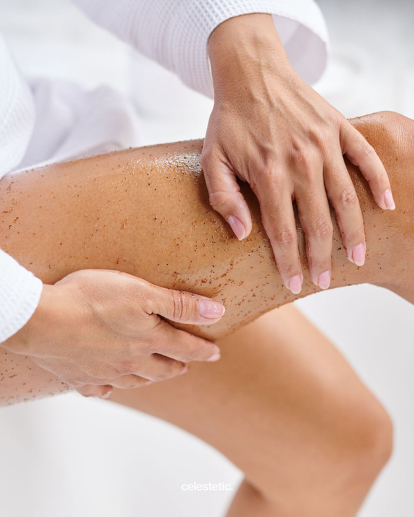 Met deze bodyscrub kun je het lichaam van deze dode huid zachtjes exfoliëren.